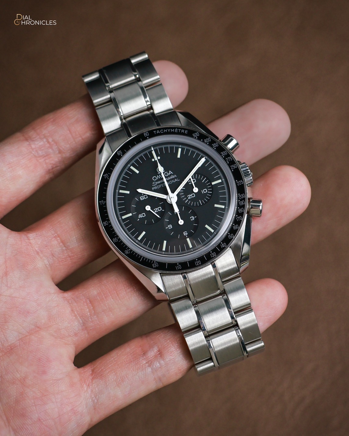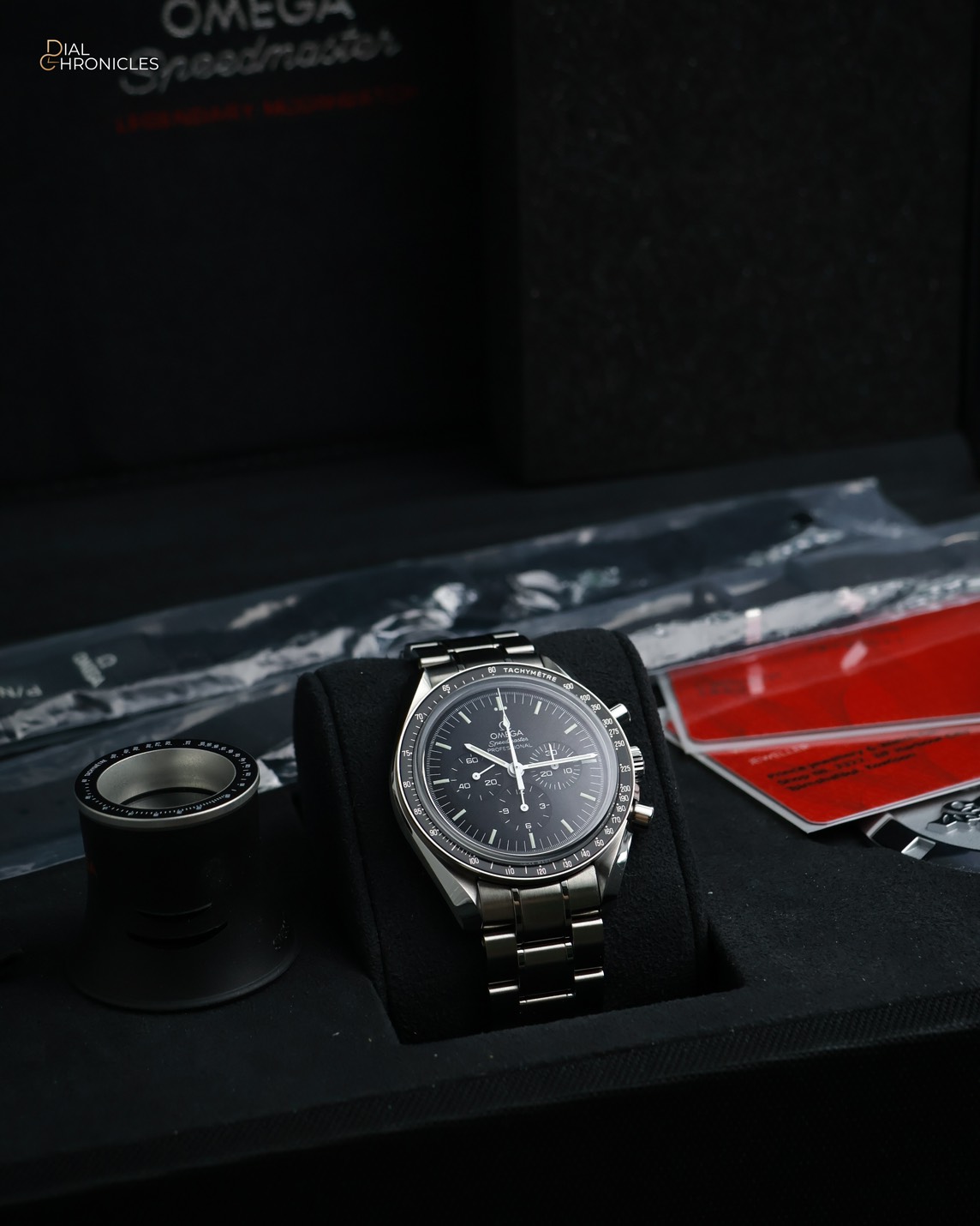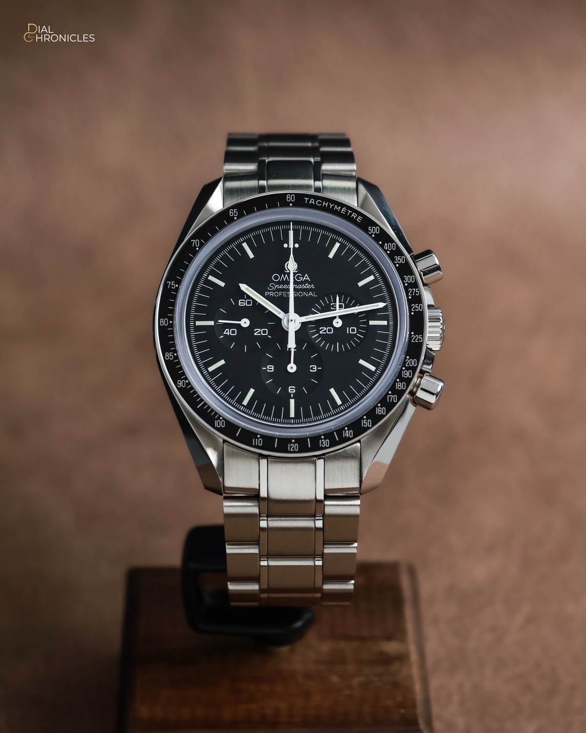 Moonwatch สุดคลาสสิกที่ใช้เครื่องไขลานCal. 1863 หลังเปลือยโชว์กลไก ตัวเรือน Stainless Steel ขนาด 42 มม. หน้าปัดดำพร้อมฟังก์ชัน Chronograph รุ่นยอดนิยมครับ